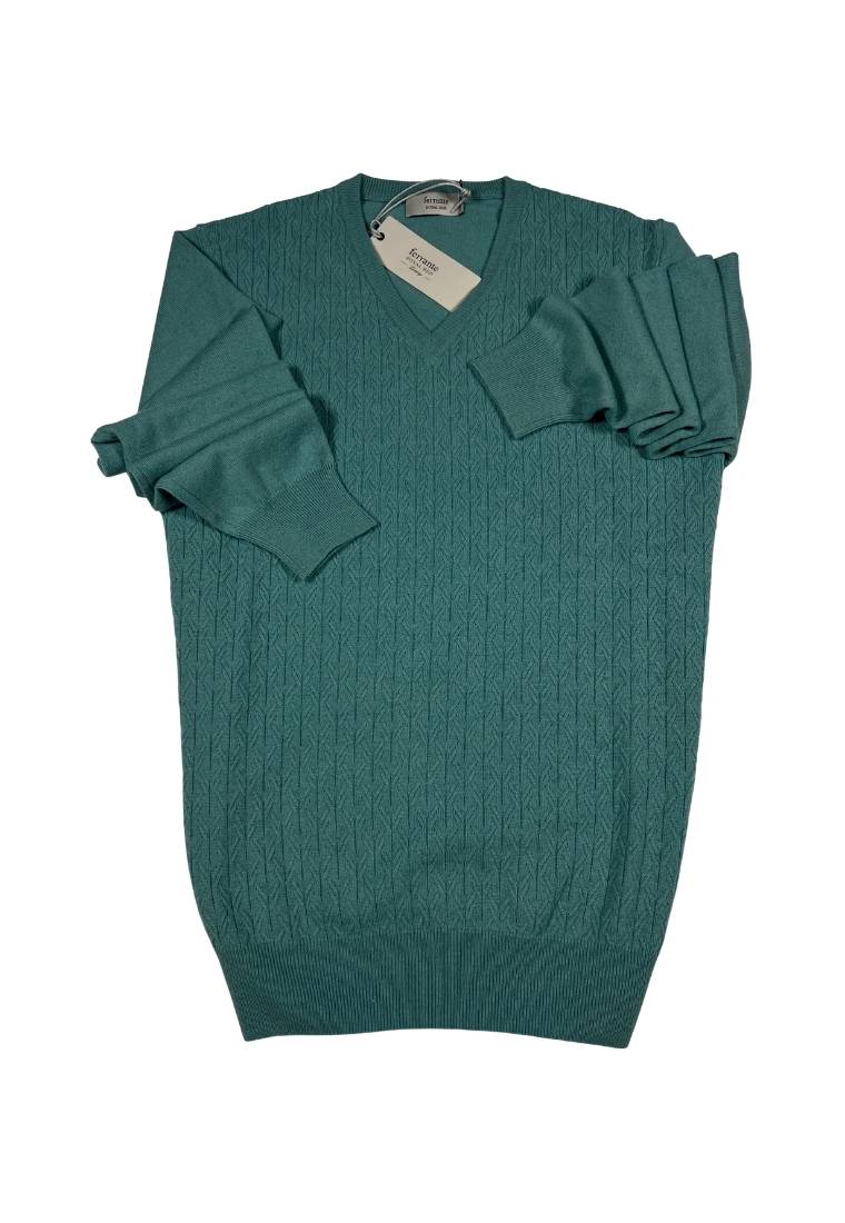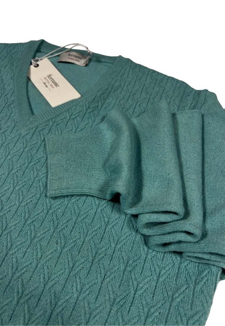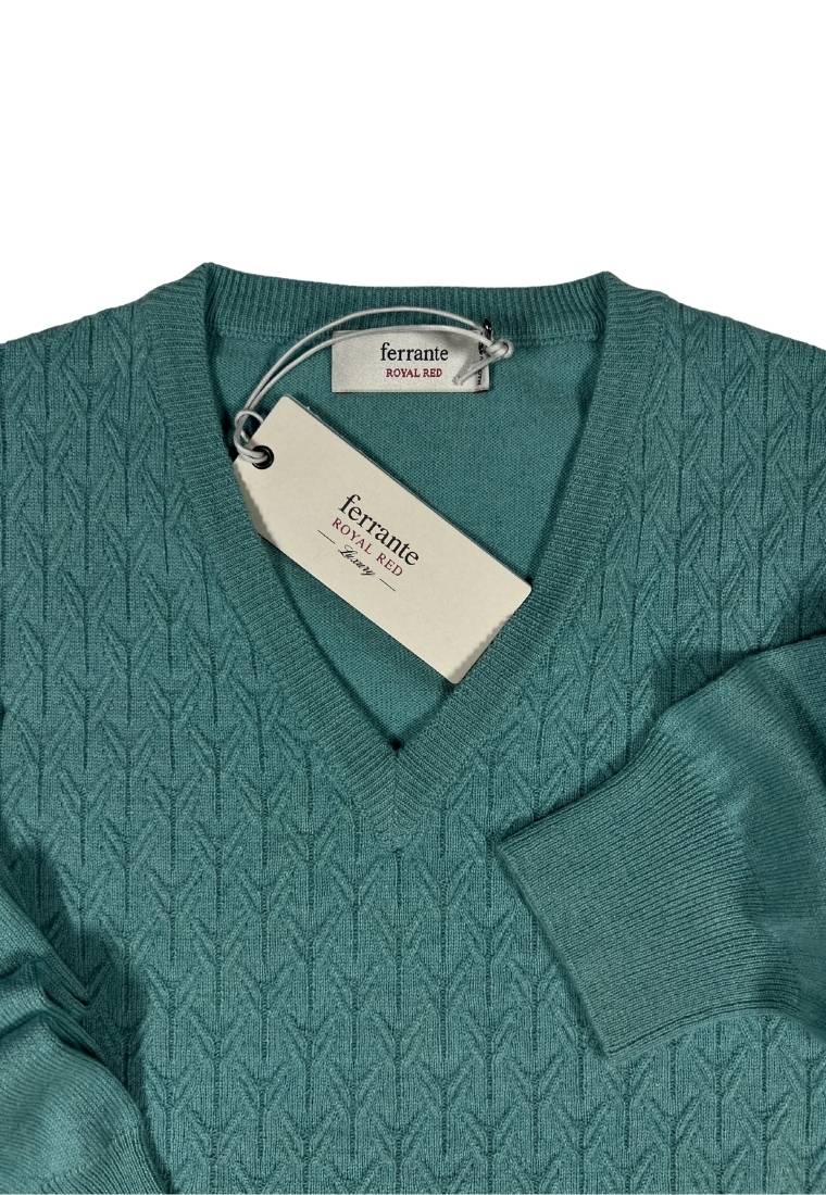 Scollo V Ferrante treccia collezione Royal Red in lana, seta e cashmere.